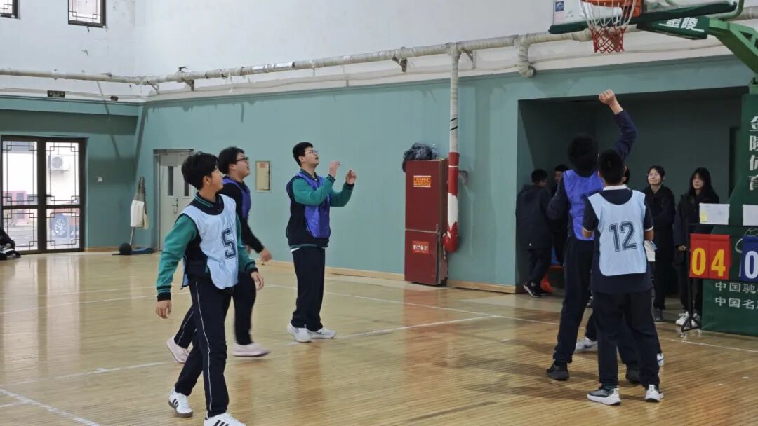 高中部在篮球馆内,气氛紧张热烈。男篮的对抗彰显力量与速度,女篮的比拼则充满技巧与默契,攻防之间尽显青春的**与团队的智慧。