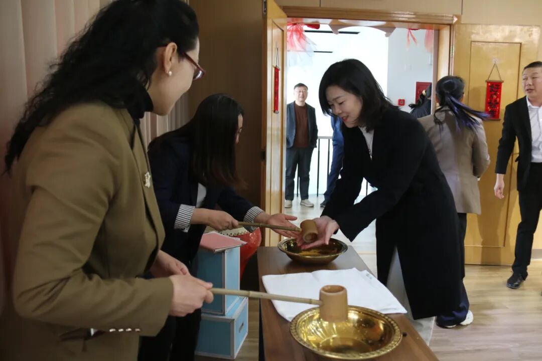 五位校长移步台前,为学子们点朱砂、送祝福。学子们手持军令状依次上前,红红的朱砂是智慧的象征、美好的祝福,更是百日冲刺、决胜中考的磅礴力量。