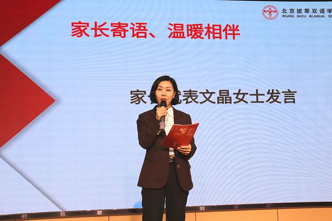 家长代表文晶女士登台寄语,字里行间满是对孩子的殷切期盼与深沉关爱,为冲刺中考的学子注入温暖而坚实的力量。这份亲情的鼓舞,让学子们更坚定了向前奔跑的勇气。