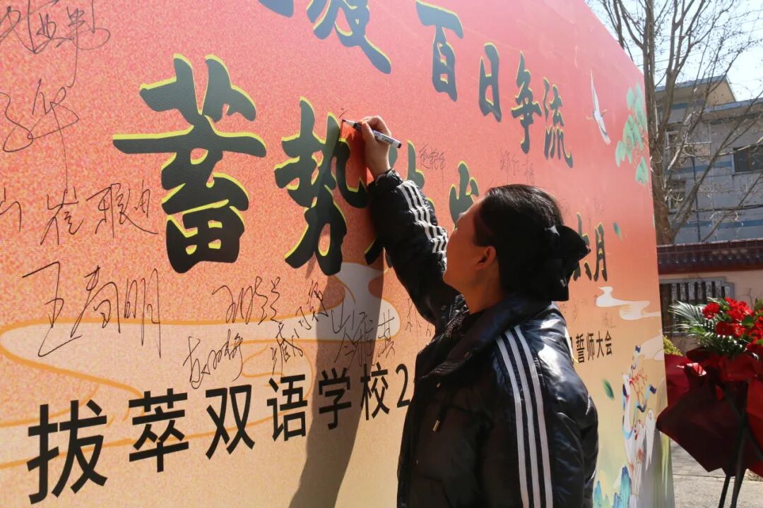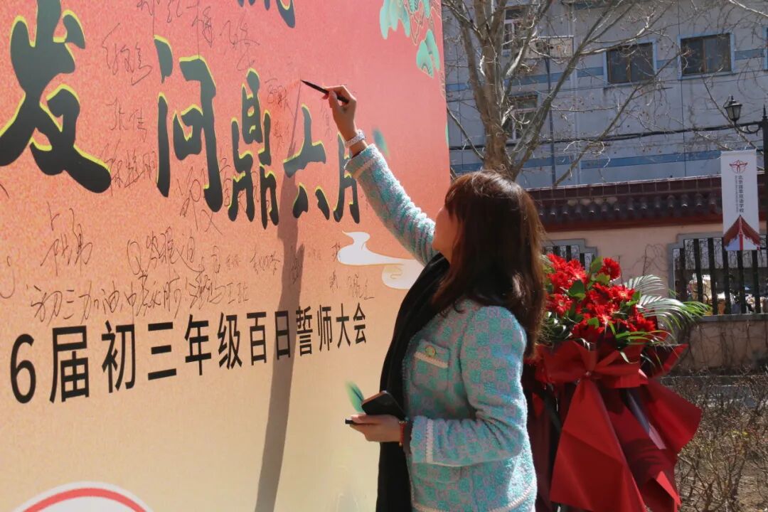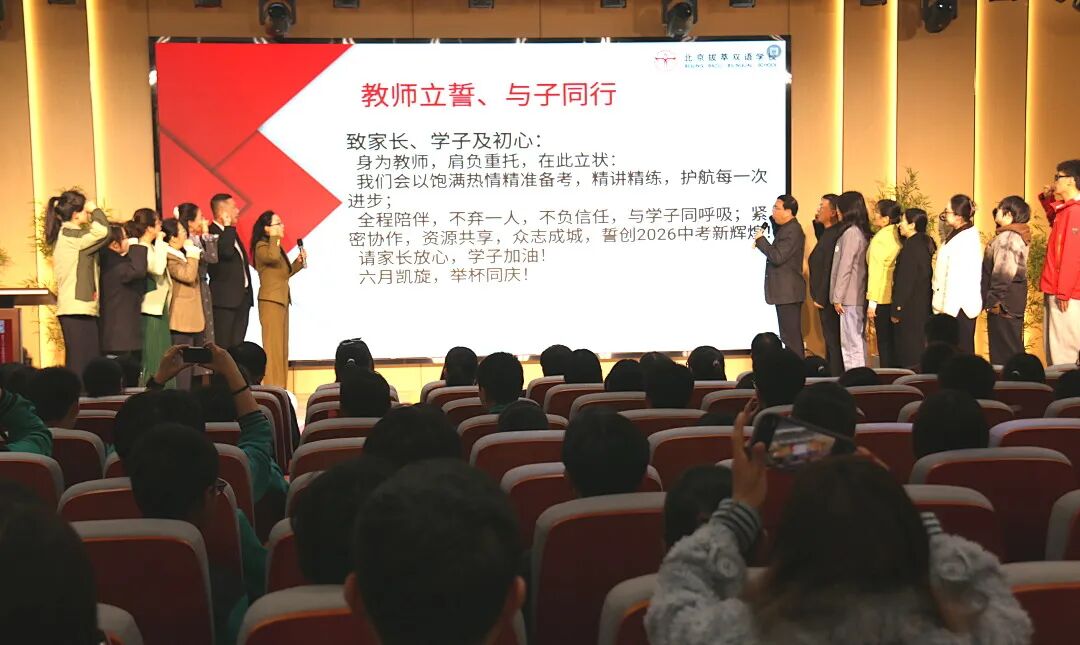 全体初三教师整齐登台,在初中部主管高主任的带领下共同宣读百日誓师誓言,以铿锵之声许下精准备考、全程陪伴的郑重承诺,彰显护航学子、共赴中考的坚定担当。