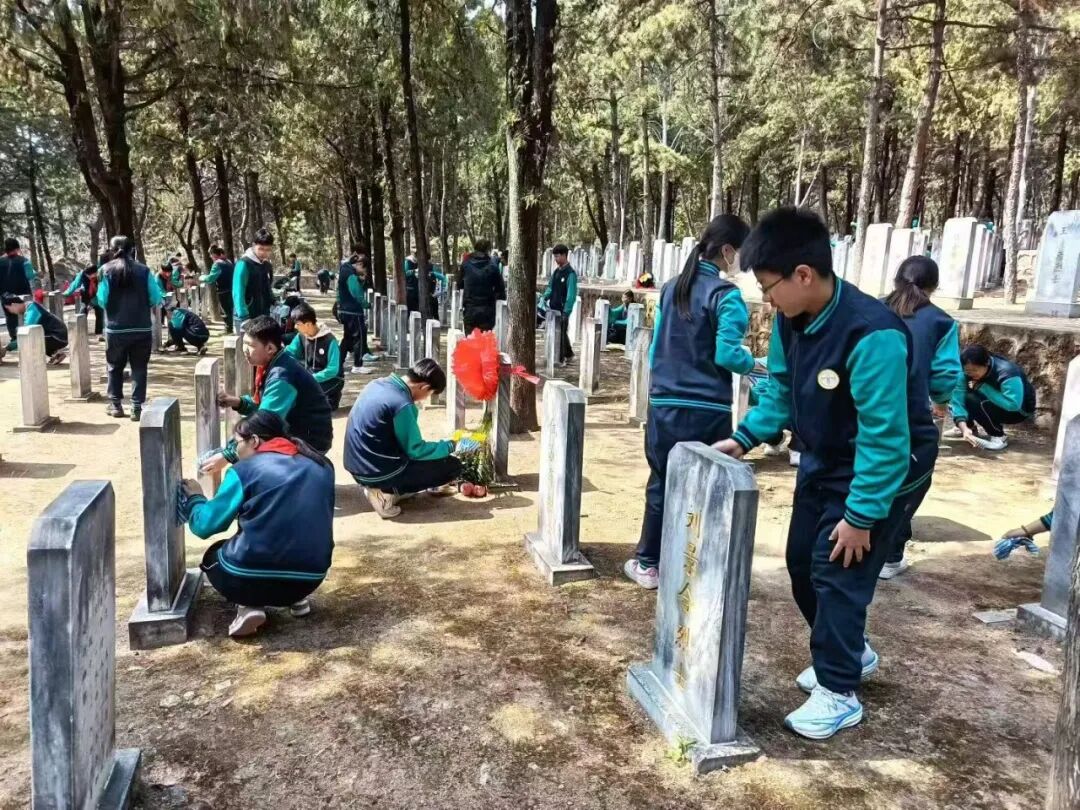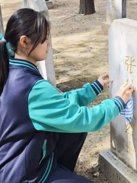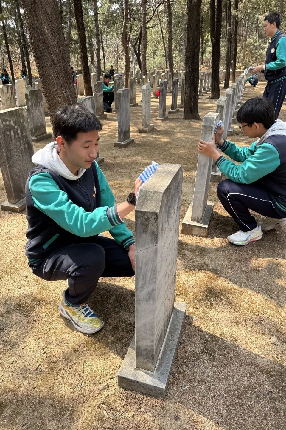 当擦到碑文上与自己同龄的年月时,很多同学手中的动作慢了下来,有的同学潸然泪下,有的同学眼神重新变得坚定,每一次擦拭的动作都格外认真。阳光落在擦净的碑面上,泛起温润的光,像年轻的烈士们从未远去的目光。