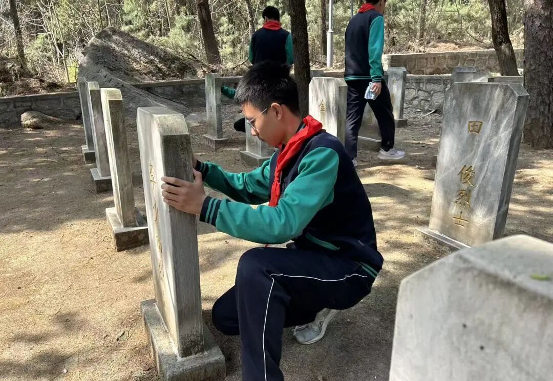 我们来到了盘山烈士陵园,站在陵园里看着一排排整齐的墓碑让我心生感触,在擦拭墓碑时,我仿佛感受到了到先烈们的脉搏,深刻懂得了今天的幸福来之不易。这次活动不仅让我铭记英烈,更让我明白要带着他们的精神,在成长路上勇毅前行。请党放心,强国有我!出类拔萃,奉献青春中华!