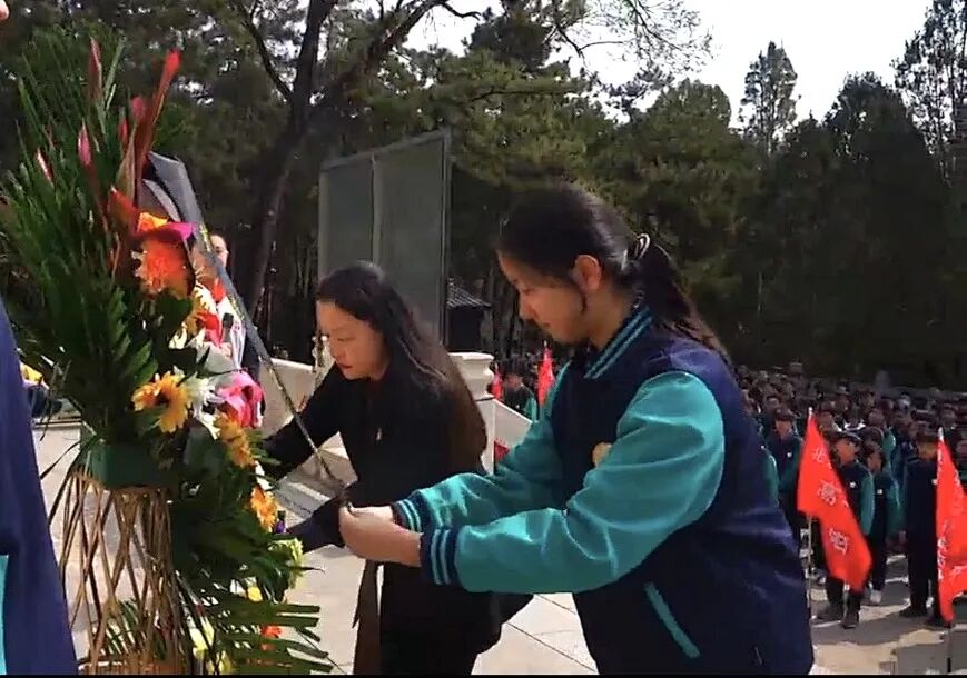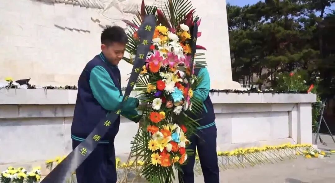 学生代表向革命烈士纪念碑敬献花篮。丁利书记和学生代表缓步拾级而上,整理挽联,动作庄重肃穆,每一个细节寄托拔萃全体师生对先烈的深切哀思与崇高敬意。
