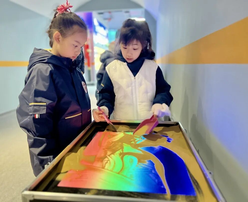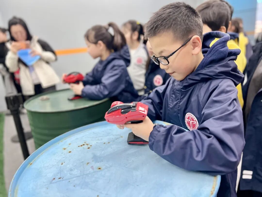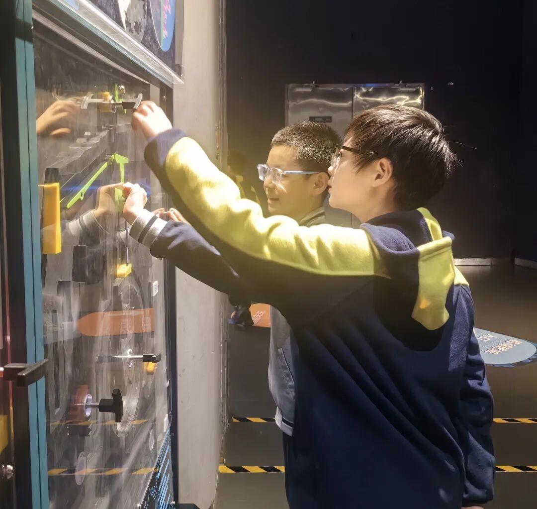 一至四年级的同学们前往首钢园,在新旧交融的工业画卷里,探寻时代流转中的科技密码;五至六年级的同学们走进中国宋庆龄青少年科技文化交流中心,紧扣「智启少年心 科创向未来」的研学主题,沉浸式遨游航天星海,解锁科创世界的无限奥秘。