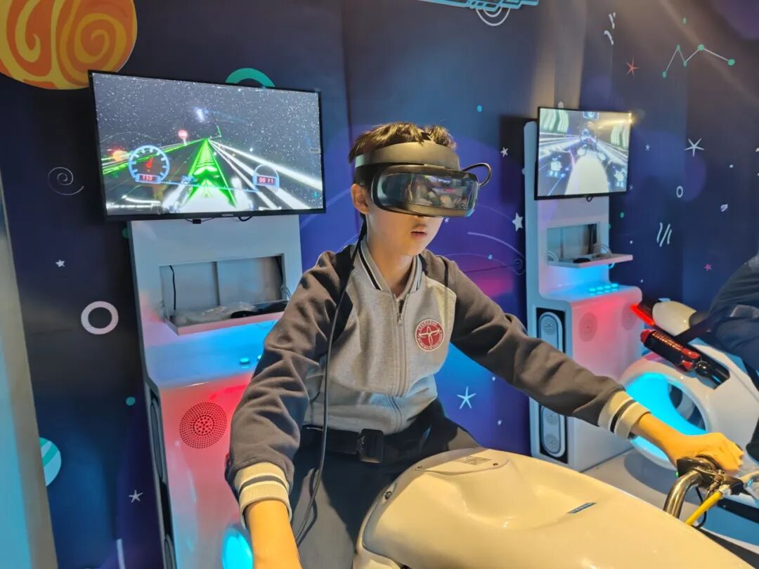 最后奔向宇宙体验区,音律、光影与航天科创完美交融。同学们在虚实交互的场景里漫游星际,心底的好奇心被充分唤醒,天马行空的想象力尽情舒展,在沉浸式体验中,种下热爱科学、奔赴星海的梦想。