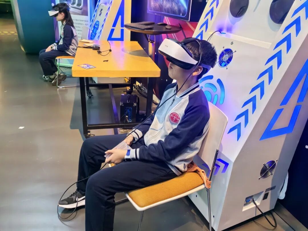 本次研学的VR体验令我印象深刻。戴上眼镜,我仿佛穿越进了全新世界,化身小小探险家探索未知。我真切感受到了科技的神奇,今后定会努力学习,探索更多科学奥秘。