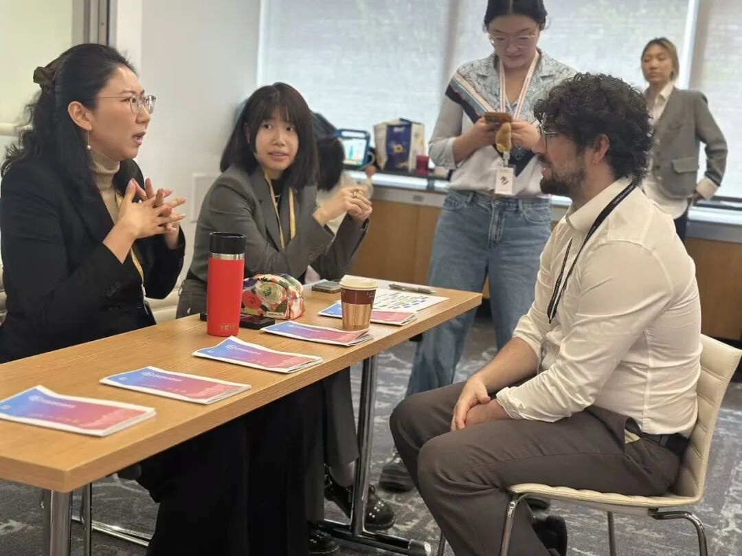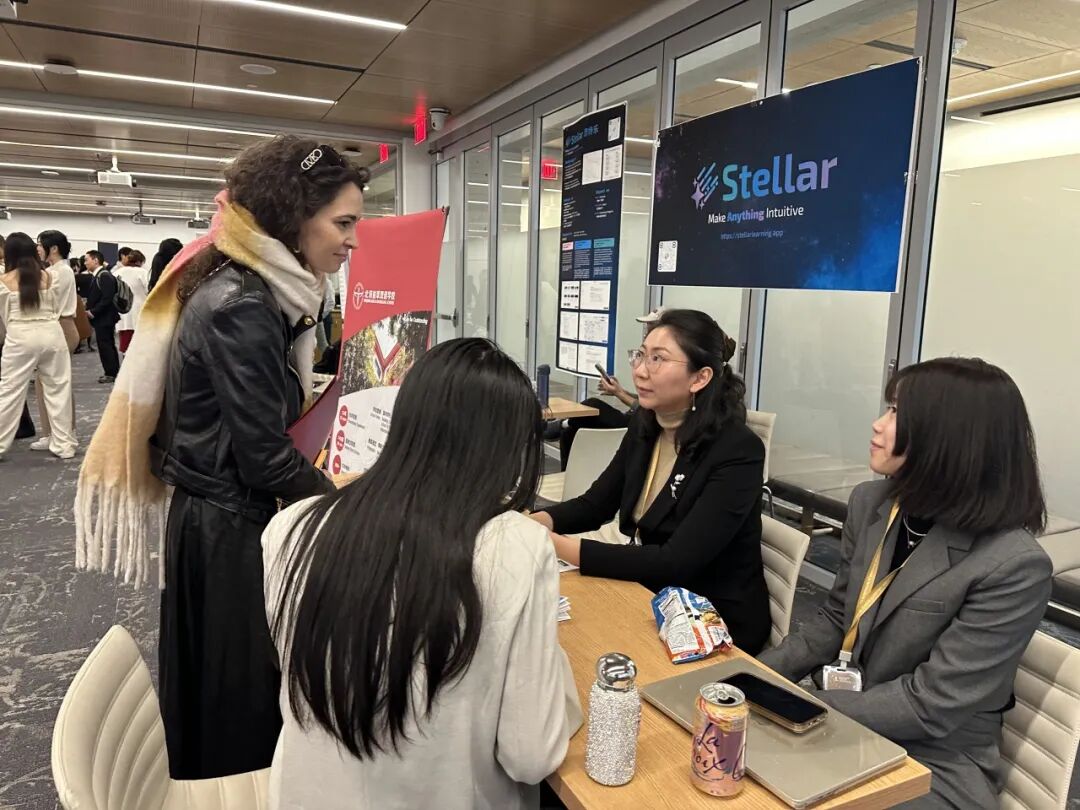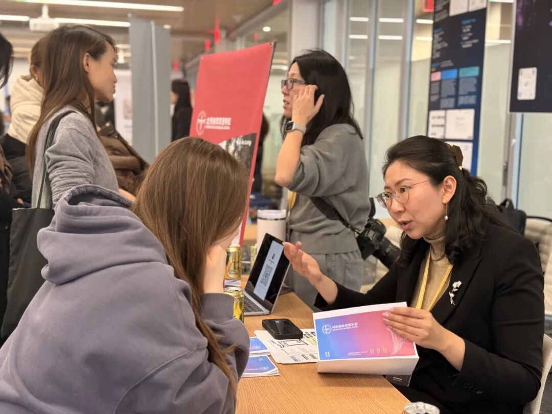 在博览会现场,郭琪老师与来自全球不同背景的青年学子进行了一对一深度交流。来自哈佛大学肯尼迪学院、现职于联合国教科文组织的Regina,以及欧歌学院宣传负责人鼎芳共同参与了现场支持。