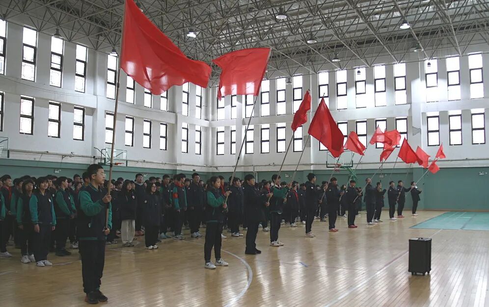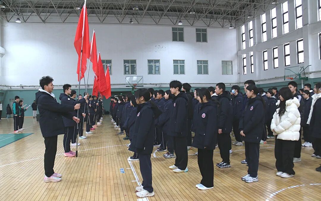 授旗仪式将现场氛围推向**。学校党支部丁利书记将象征荣誉、团结与拼搏的“班超”红色战旗,庄严授予各班级代表。