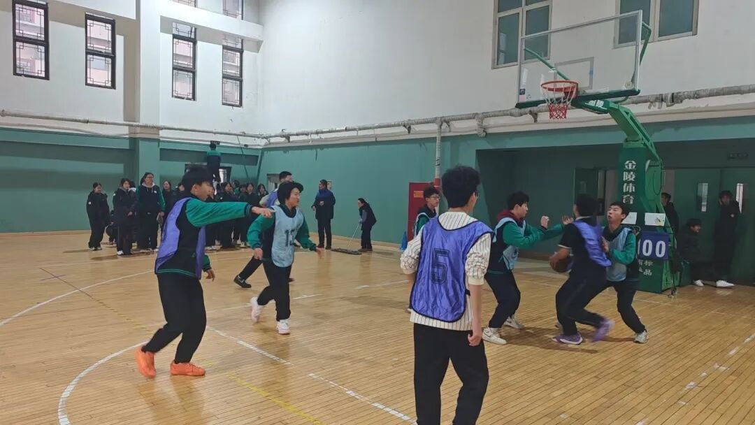 高中部在篮球馆内,气氛紧张热烈。男篮的对抗彰显力量与速度,女篮的比拼则充满技巧与默契,攻防之间尽显青春的**与团队的智慧。