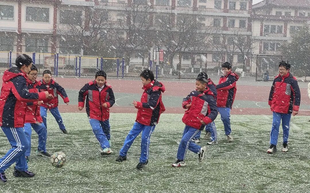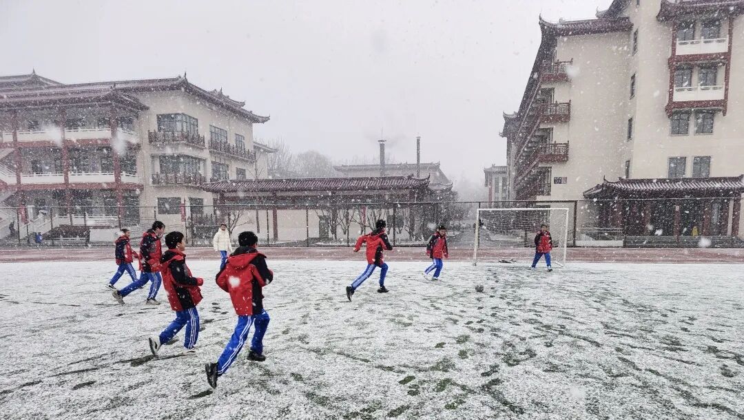 小学部在绿茵场上,一场别开生面的“雪中趣味足球赛”正在上演。小将们不畏春寒,在点点飞雪中奔跑追逐,纯真的笑声与热烈的呐喊交织,构成一幅动人的画卷。