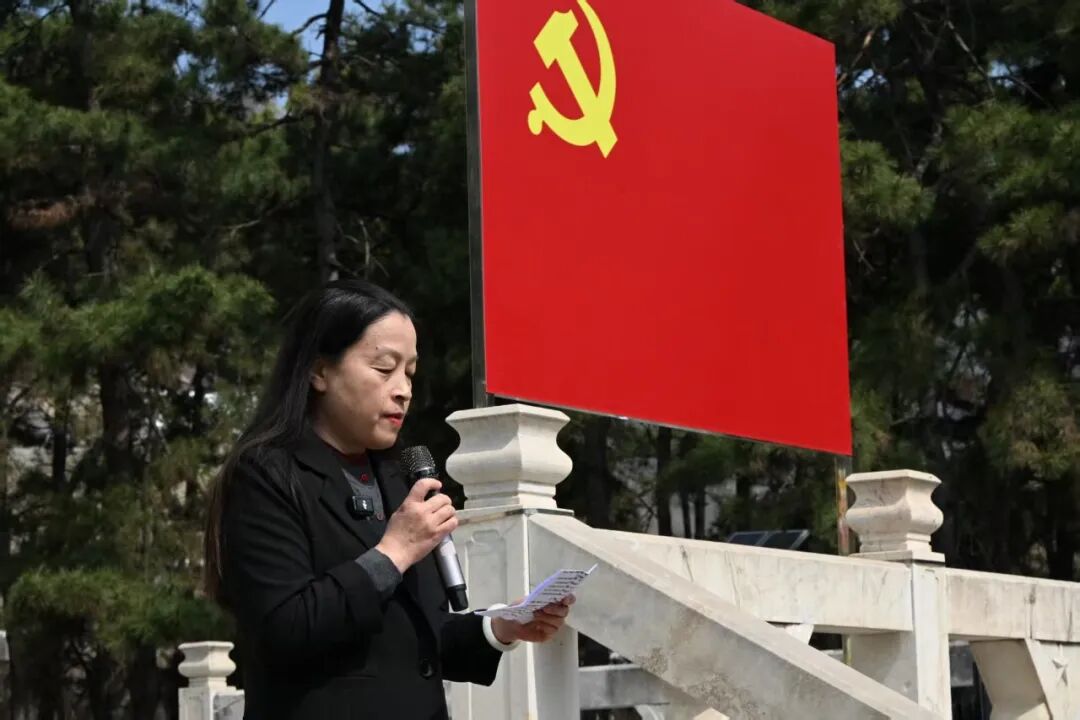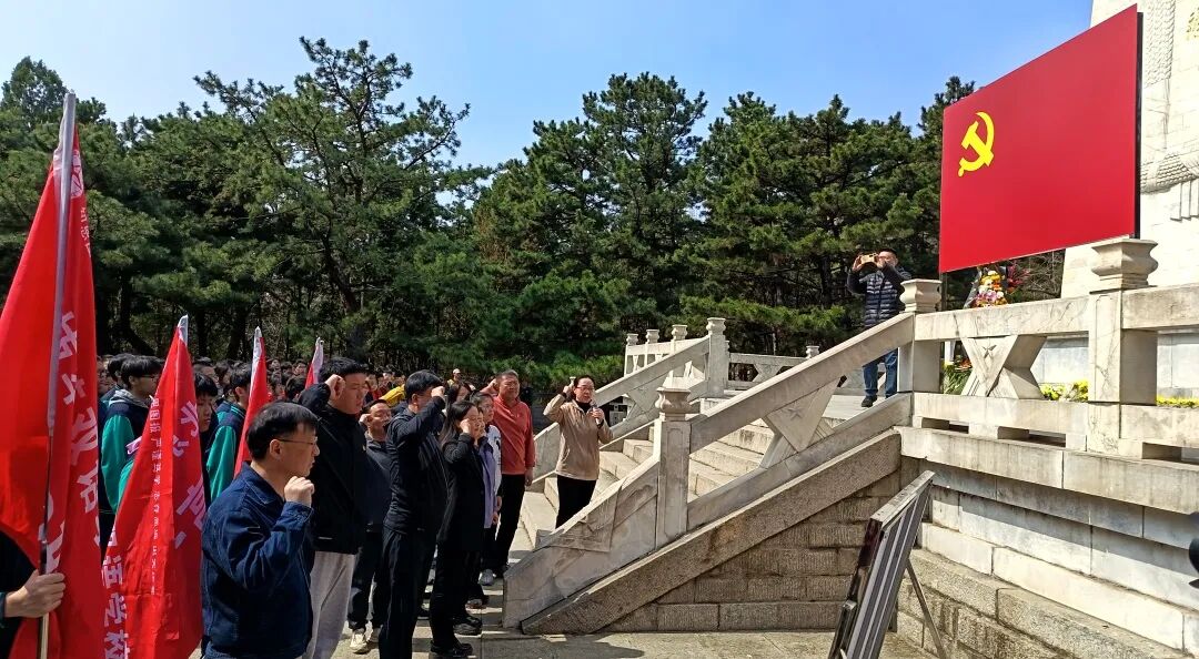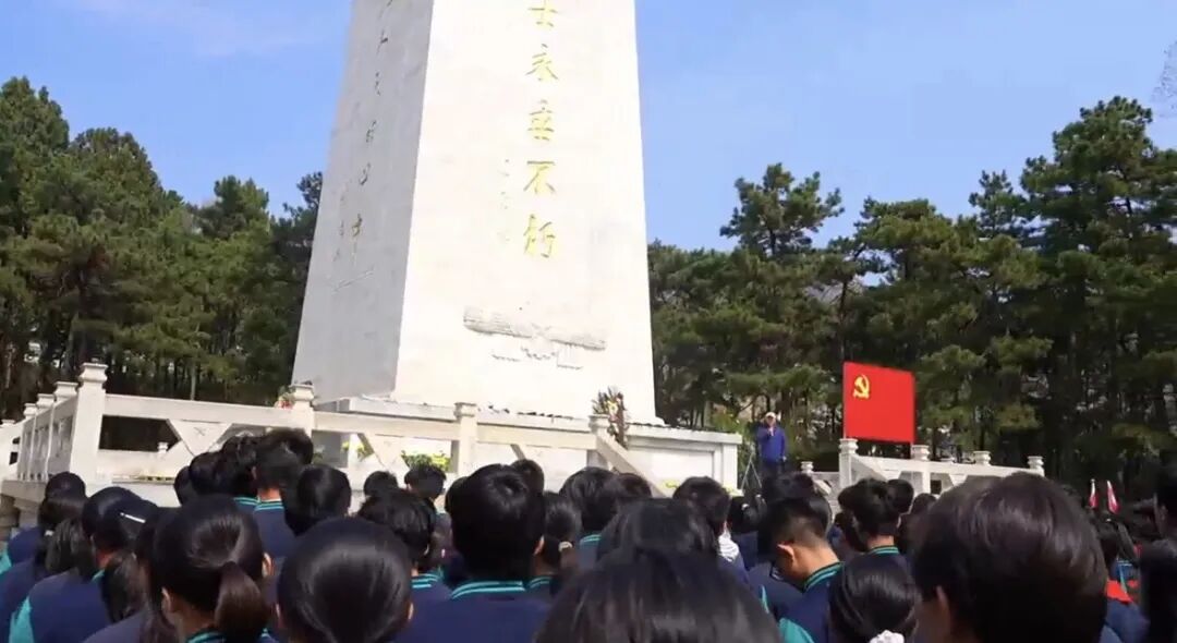 党员教师代表面向英烈纪念碑肃立,面对党旗高举右拳,重温入党誓词。全体团员随后面向团旗,重温入团誓词,以青春之名许下传承英烈精神、勇担时代重任的坚定承诺。
