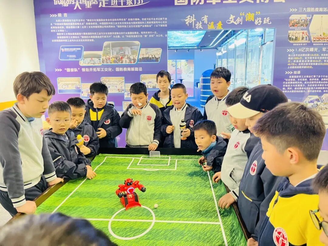 同学们沉浸在丰富多彩的科创体验之中:与灵动的人形机器人、可爱的智能机器狗近距离互动;在VR/AR沉浸式场景中穿梭漫游,切身感受数字科技的奇妙;走进国防科普展区,了解大国重器风采,亲手操控机械臂,触摸智能制造的力量。
